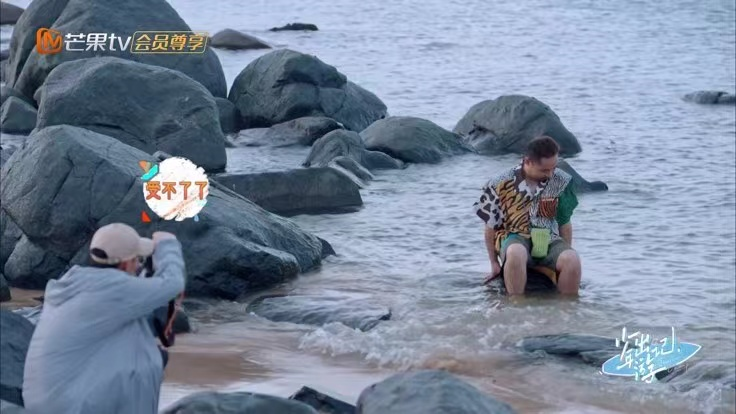 在海上香蕉船项目玩得颠三倒四浑身湿透,下船后装作无事发生。 顶着一头湿发表示“这个项目一点儿也不刺激”“没什么难度”“海水没什么味道”“想必大家都看出来了”,看来他是在认真搞笑…
