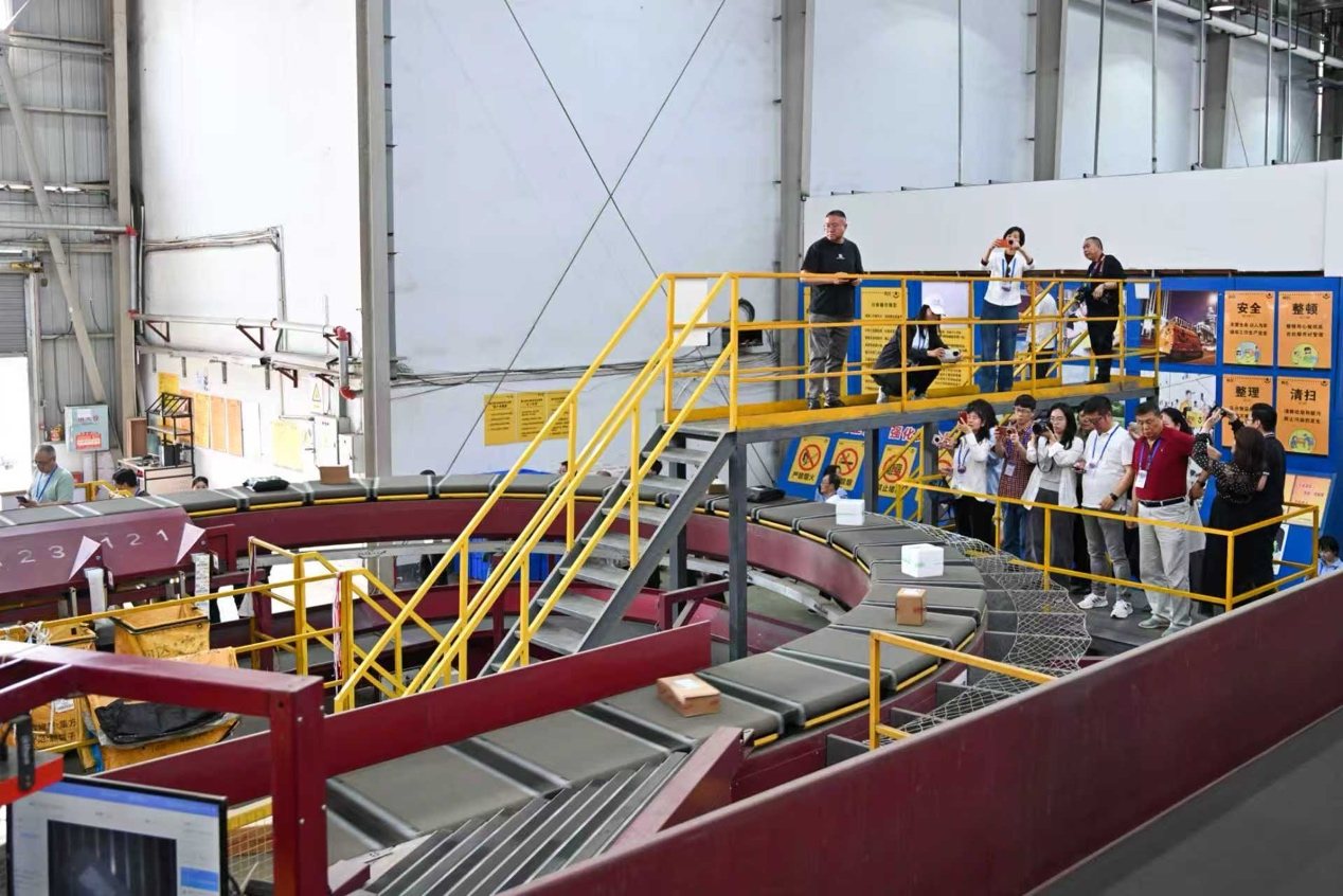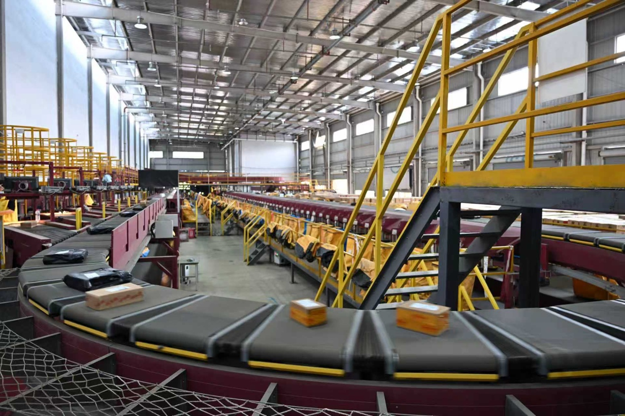 分拨中心配备了自动打包机、自动贴单机、自动分拣线、立体货架以及WMS(仓库管理系统)和ERP(企业资源计划系统)等现代化设施设备,目前已入驻电商、快递企业50余家。