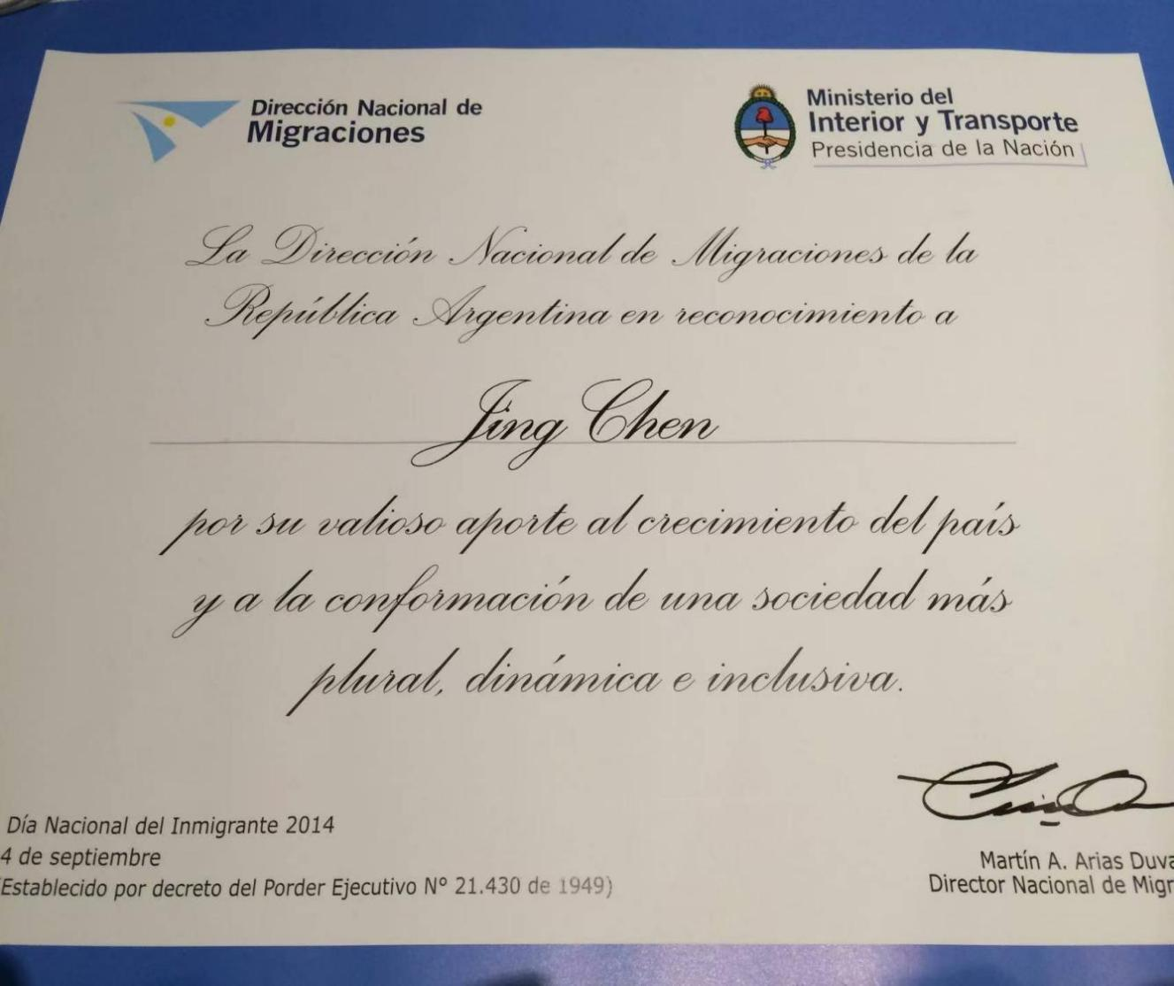 "这些活动不仅传播了文化,更搭建了中阿之间的'立交桥'。"陈静对阿根廷华人在线记者说。 她也因此获得多项荣誉:2014年获阿根廷"杰出移民"称号、"杰出女性"奖,2015年入选《阿根廷杰出移民名人录》。她还被任命为阿根廷参议院文化顾问,担任阿根廷华助中心主任、阿根廷移民协会财务总监等职。 "这些荣誉属于所有在阿华人,是对我们融入主流社会的认可。"她说。 拓展平民外交的广度和深度 在陈静看来,文化交流不仅是舞台上的锣鼓喧天,更是与阿根廷政府、社会各界建立长期信任的过程。她常说:"我们是民间使者,但民间交往同样可以抵达很高的层次。" 2017年,由阿根廷副总统兼参议长加布里埃拉•米凯蒂任命,陈静受聘担任参议院顾问,一位华人女性进入国家最高立法机构的顾问席,在阿根廷华人圈引起不小反响。"这不仅是我的荣誉,更是阿根廷政府对华人群体贡献的认可。"陈静说。