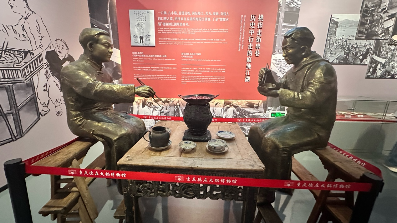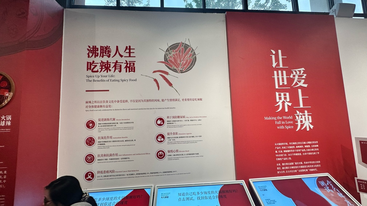 走进园区,仿佛进入了一个“火锅世界”。火锅博物馆里陈列着千年纤夫石、百年老油坊、古法豆瓣晒制场,还有获得基尼斯世界纪录的“德庄大火锅”以及震撼视觉的“麻辣金锅”“流淌的火锅”。 辣椒科普馆、花椒科普馆、非遗馆、酿造工坊、工厂火锅体验中心……十几个场馆逛下来,游客可以一边看一边吃。